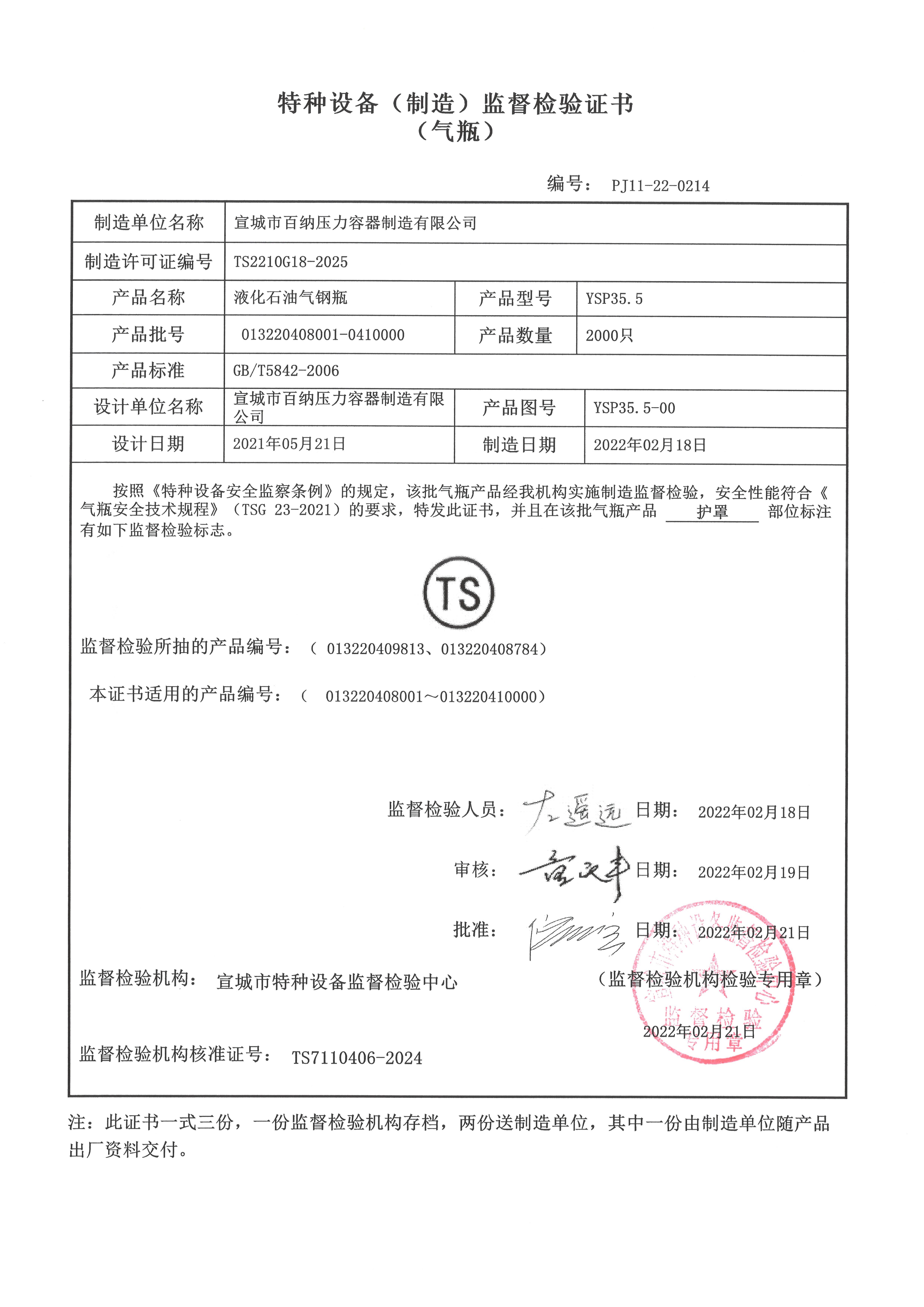 | 阀门许可证号:TSF210008-2022 |