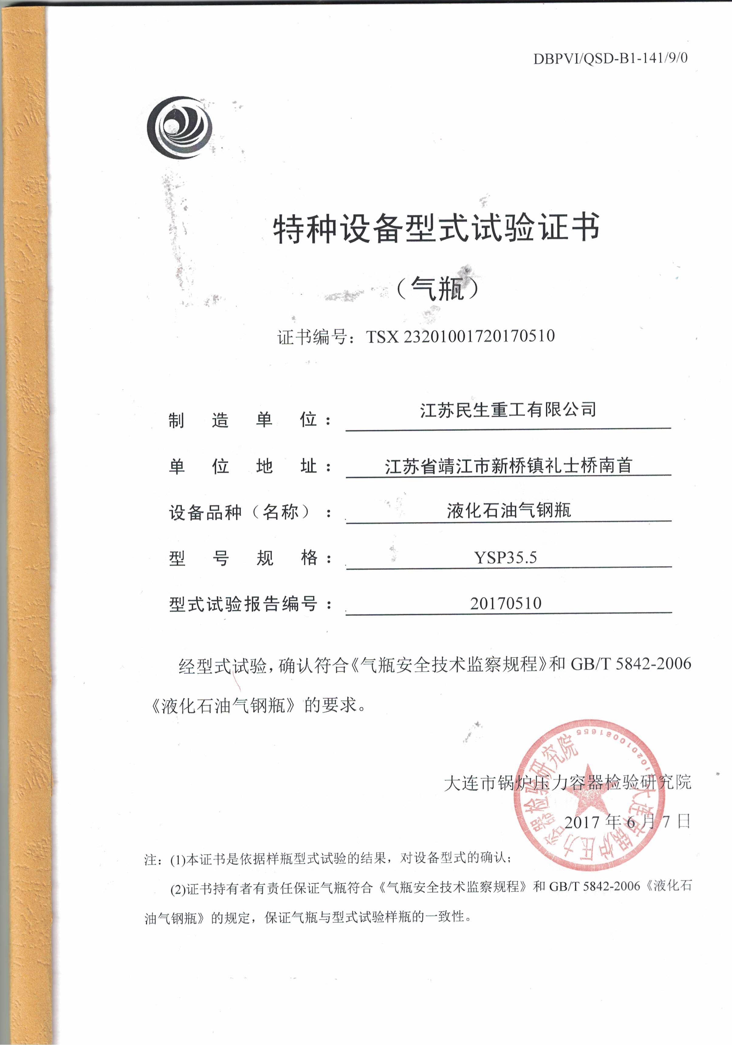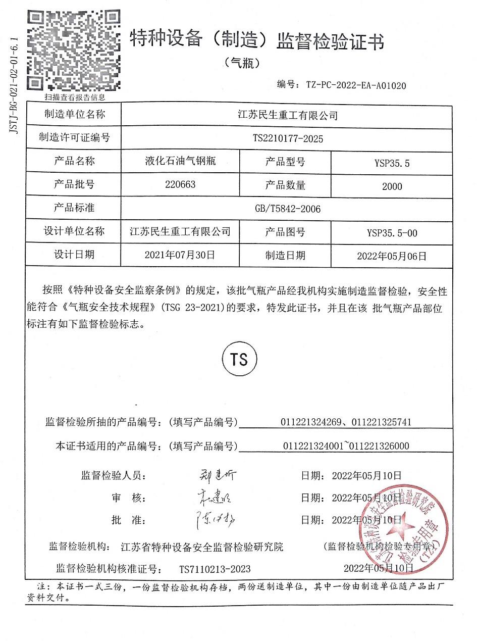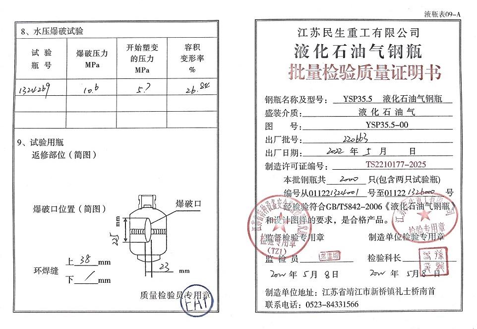 | 气瓶型号:YSP35.5型液化石油气钢瓶 |