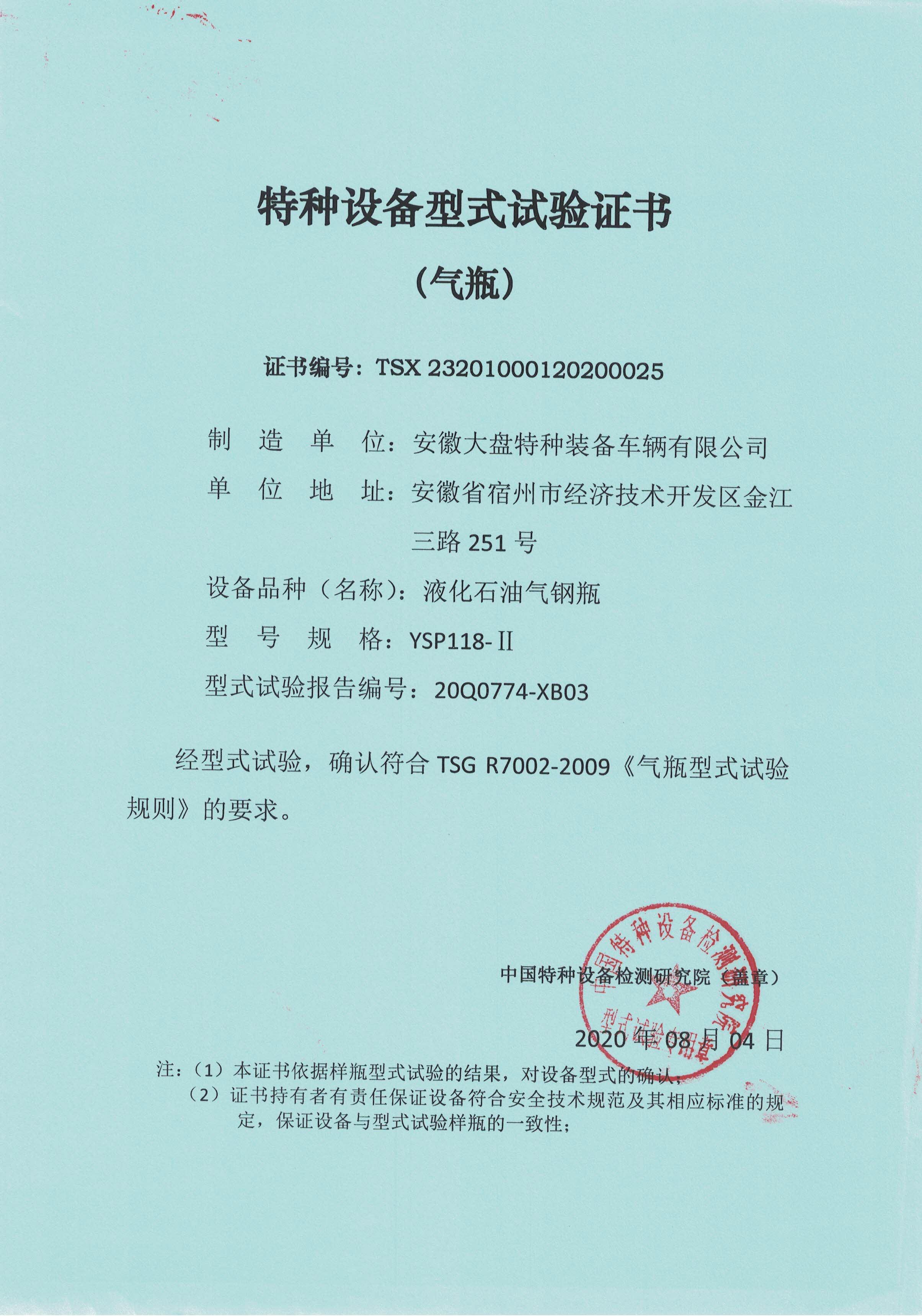 | 气瓶型号:YSP118型液化石油气钢瓶 |