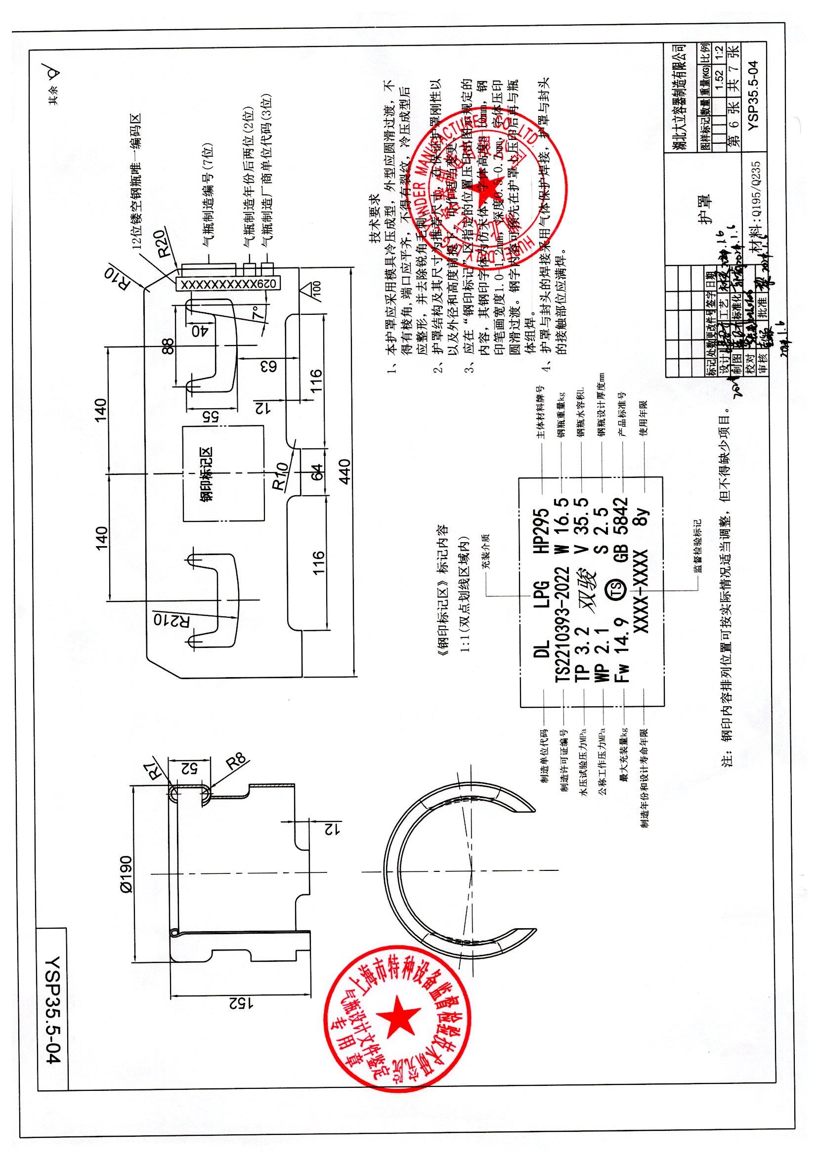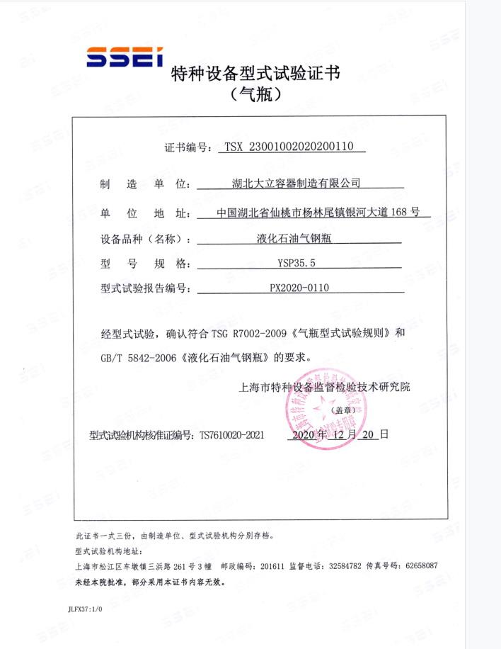 | 气瓶型号:YSP35.5型液化石油气钢瓶 |