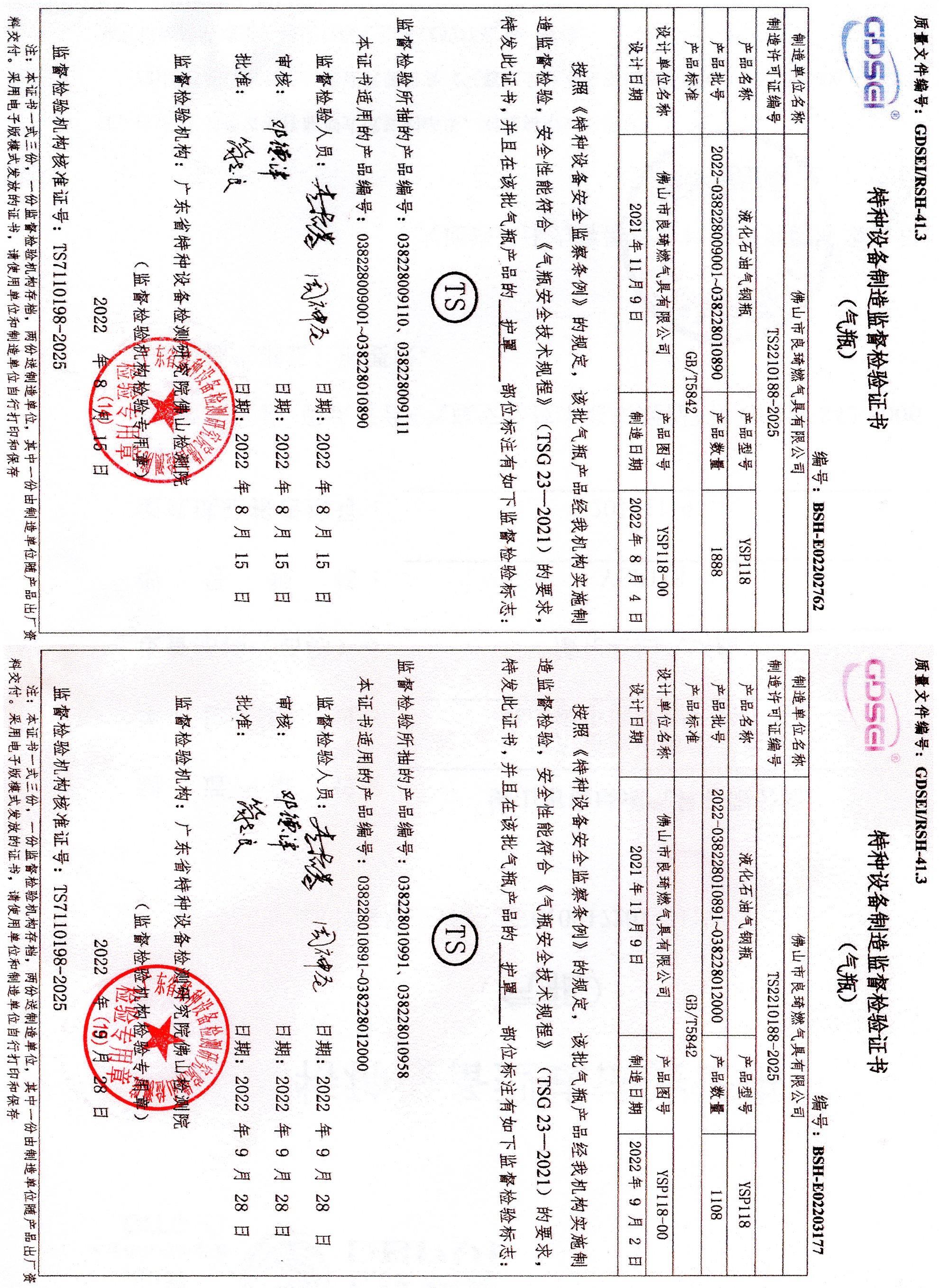 | 气瓶型号:YSP118型液化石油气钢瓶 |